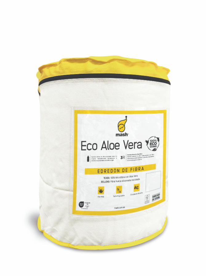 El edredón nórdico Mash Eco Aloe Vera, el equilibrio perfecto entre calidez, confort y sostenibilidad. Con tejido exterior suave de microfibra y relleno de fibra hueca siliconada reciclada, este nórdico ofrece un tacto mullido similar al plumón natural, con el plus de ser ligero, transpirable, hipoalergénico y fácil de lavar. Con un gramaje de 300 g/m², está pensado para inviernos fríos en zonas de clima templado, manteniendo el calor necesario sin exceso ni sudoración. Su estructura de fibras permite una óptima circulación del aire y evita humedad, malos olores o proliferación de ácaros, para un descanso saludable y seguro contra alérgenos al producto, además, su relleno reciclado lo convierte en un producto respetuoso con el medio ambiente.